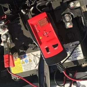 Crvenu i crnu štipaljku spojite na akumulator vozila. Ukoliko je prekidač uređaja kojeg želimo testirati spojen između uređaja i pozitivnog pola akumulatora vrhom testera dotaknite kontakt trošila i pritisnite taster na testeru prema oznaci +.