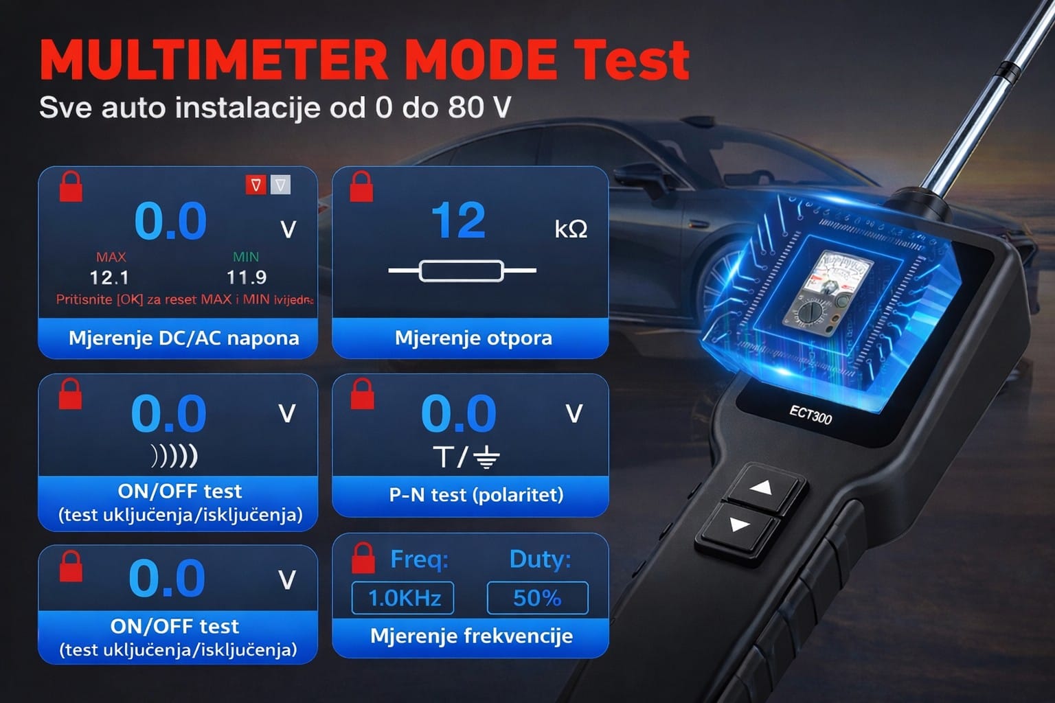 Ako tražiš jedan alat koji zamjenjuje više uređaja, ECT300 je praktično rješenje za svakodnevnu dijagnostiku auto instalacija.